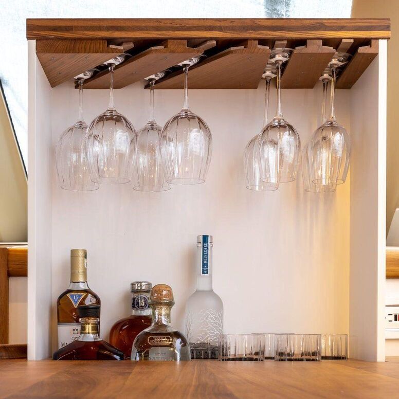 - Storage designed to fit your chosen wine glasses, highballs, silverware, etc.